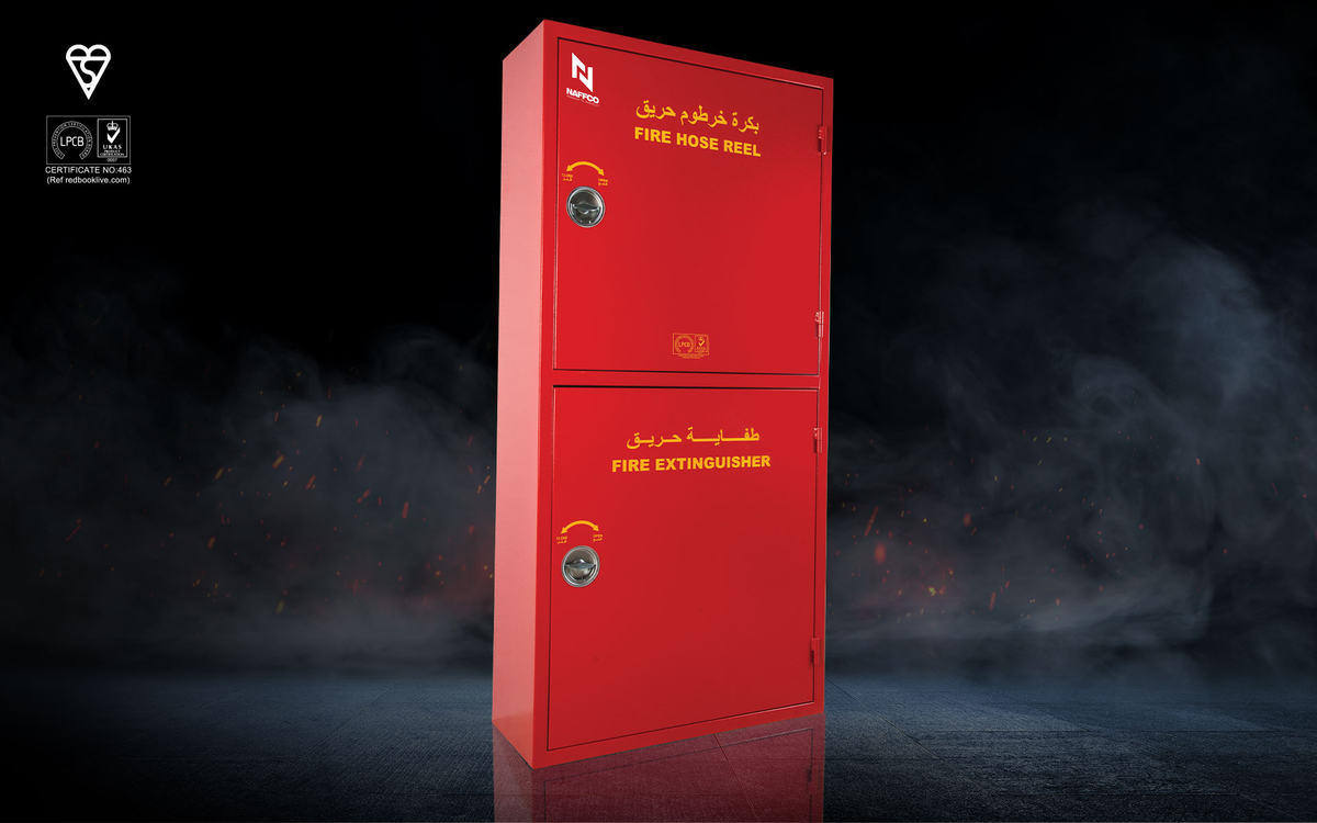 NAFFCO Fire Cabinets are designed to store and protect fire-fighting equipment such as hose reels, extinguishers, and hydrants.